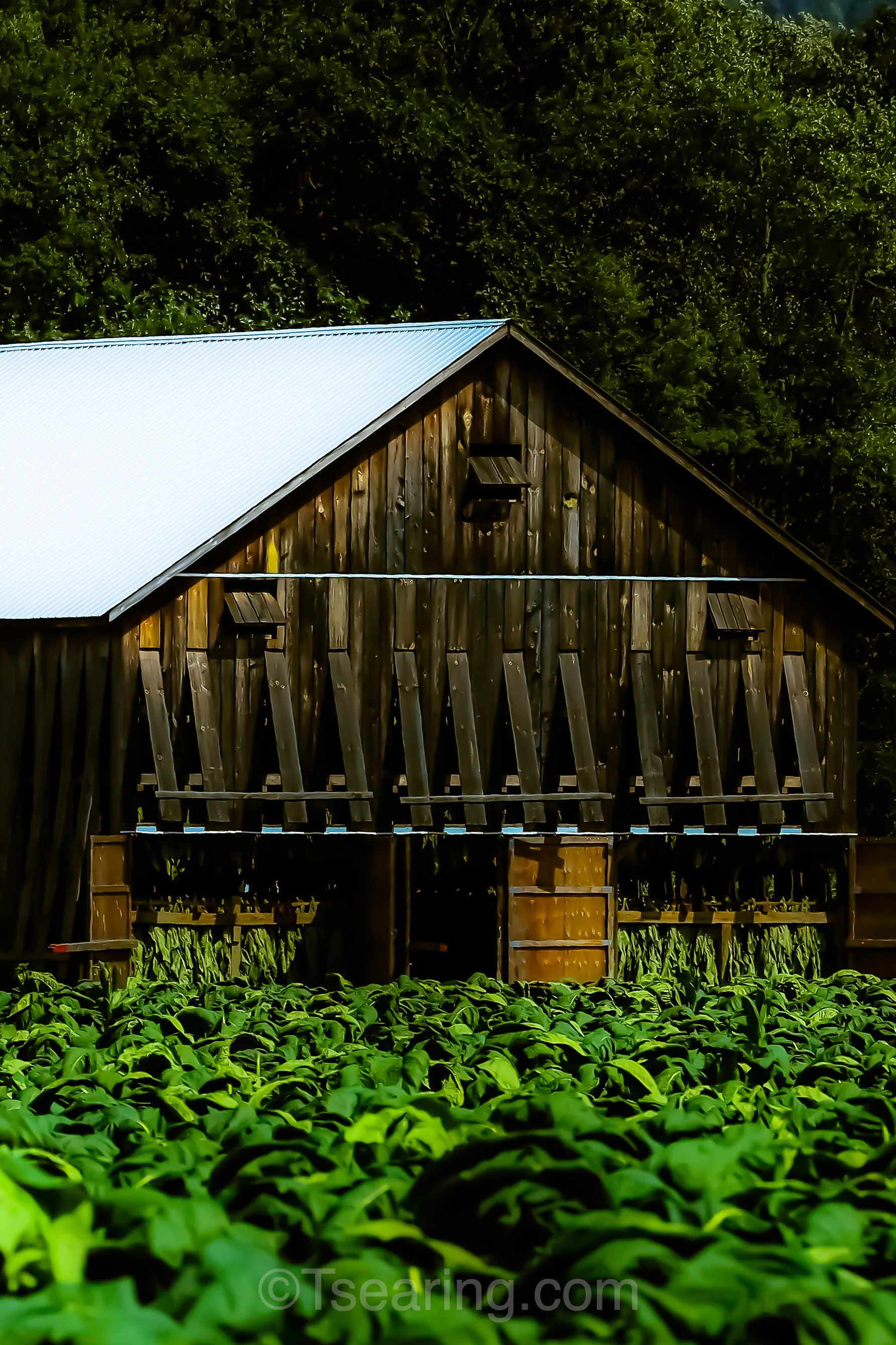 Somers, CT 2020 Tobacco Farm - Leaves growing and hung to dry.